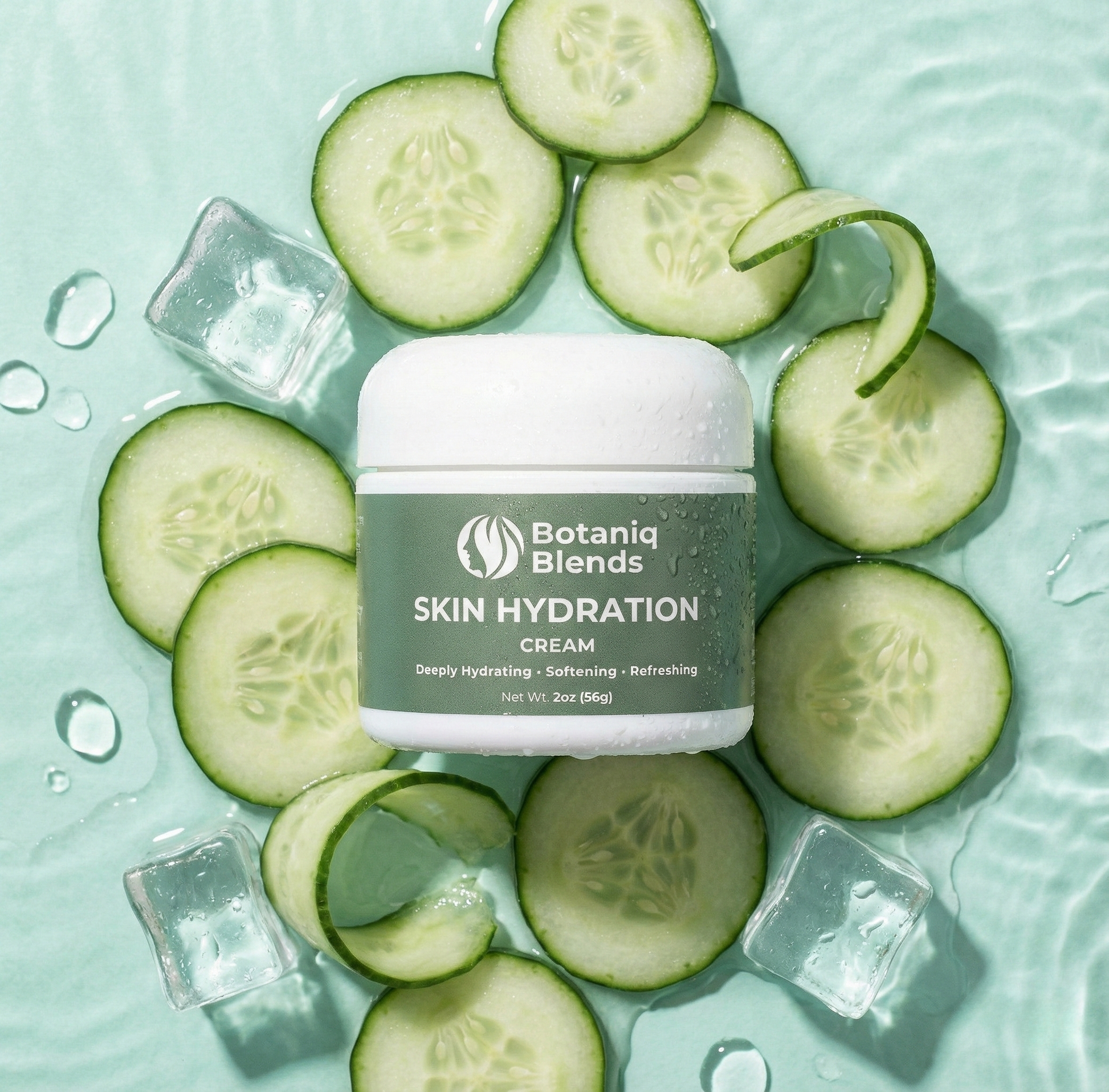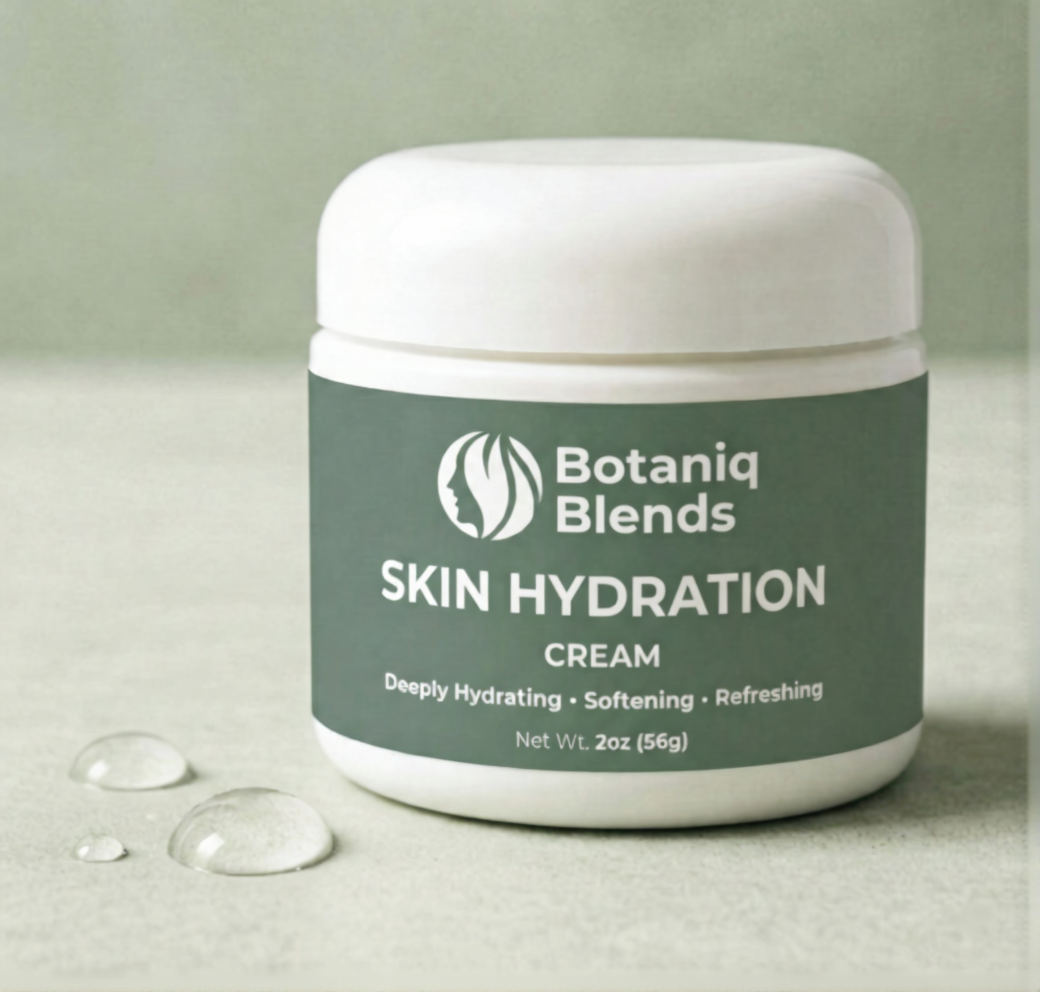 Our Skin Hydration Cream is designed to quench thirsty skin and improve overall texture. Infused with Hyaluronic Acid—known for its unmatched ability to hold water—it provides lasting hydration without heaviness or residue. Combined with Avocado Oil, Vitamin E, and a refreshing cucumber note, this cream absorbs quickly, making it perfect for daily routines. Whether morning or evening, it leaves your skin glowing, supple, and refreshed.