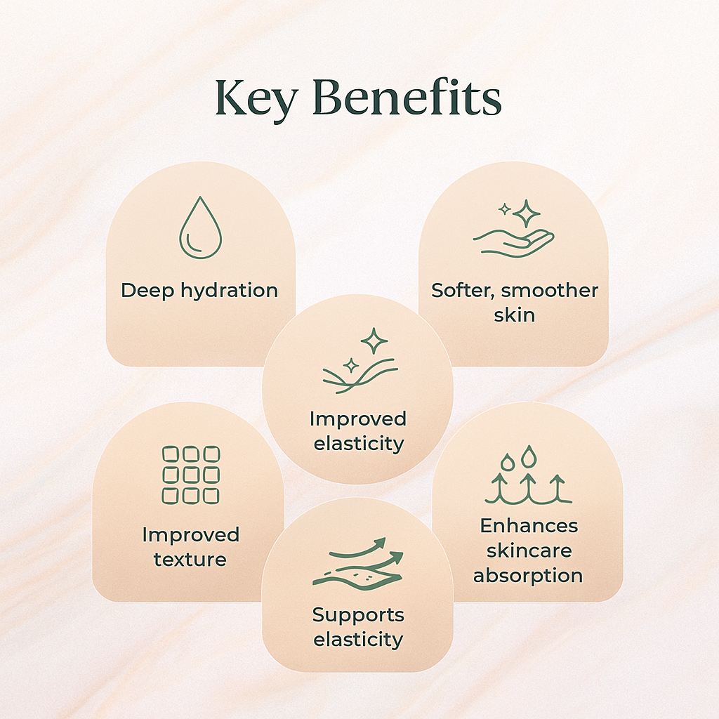 Hyaluronic Acid locks in hydration, helping your skin stay plump and radiant.